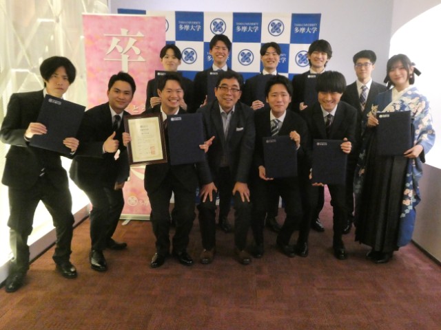 卒業証書を手渡しし記念撮影。途中で転ゼミした大久保も参加!!